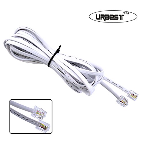 URBEST White Straight Telephone Cord 4 6P4C RJ11 Connectors Wire Cable- 15Feet Telephone Line (15 Feet)