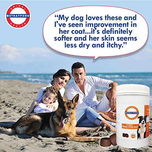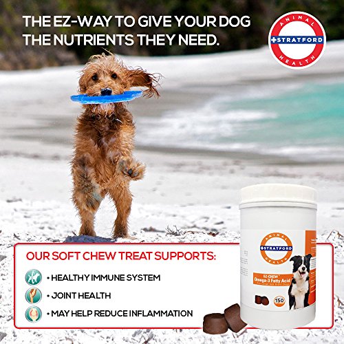 Stratford Pharmaceuticals EZ Chew Omega 3 Fatty Acid Soft Chew Max Strength - Dog Omega 3 Supplement - Soft Chew Treats with Fish Oil for Dogs - Large and Giant Dogs - 150 Soft Chews