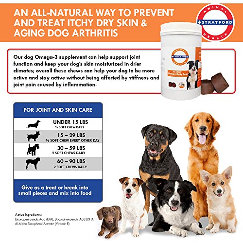 HELPS DRY SKIN & ARTHRITIS - An all-natural way to prevent and treat itchy dry skin and aging dog arthritis, our dog omega 3 supplement can help support joint function and keep your dog's skin moisturized in drier climates; overall these chews can help your dog to be more active and stay active without being affected by stiffness and joint pain caused by inflammation