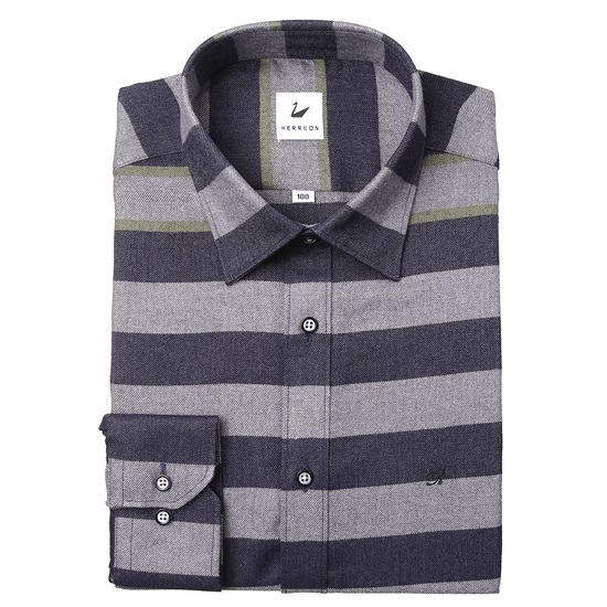 -혼방소재의 구김이없는 멀티무늬의 슬림핏 기모남방.