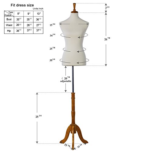 STEADY & DURABLE - Quality tested wooden tripod stand and stainless steel tube combination, make the mannequin form steady and durable enough to support heavy weight clothes, garment, wedding gown, furnishing and decorative material. It also can be easily moved around and transported if you need