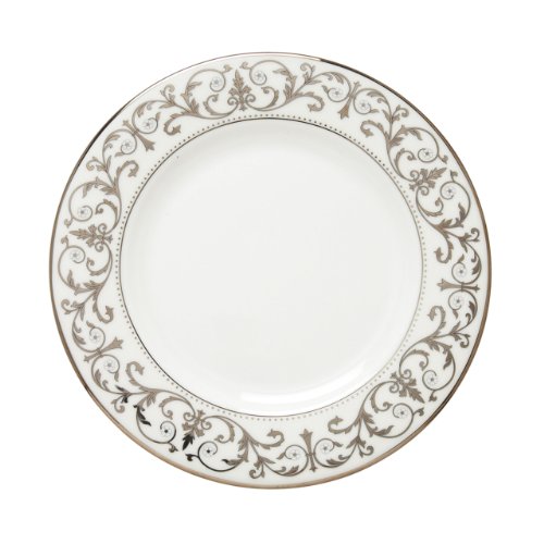 Studio : Lenox Publisher : Lenox Binding : Kitchen Product Description Free-flowing vines and flowers create a scroll motif that encircles the rim of this elegant plate. And a procession of tiny platinum dots follows the platinum band that encircles the inside of the rim. In white-bodied china, the plate also is sold as part of a 5-piece place setting.
