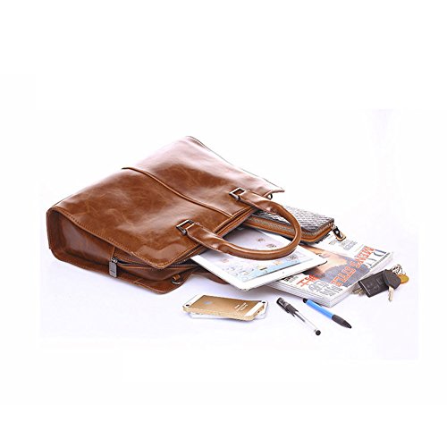 -. Feature : Material: Crazy Horse Leather / Size: (L)14.96" x (W)3.15"x (H)10.63" inch / Durable Poly-cotton Lining With Custom Electroplating Hardware Parts. / Internal Structure:Contains 1 Big Inner Compartment, 1 Laptop Pocket. 1 Cell Phone Pocket, 1 Cigarette Case Pocket, 1 Zipper Patch Pocket.Easily Hold Your 14 in Laptop, iPad, iPhone, A4 File, And Other Business Things. / Design: Close And Careful Stitching, In Strict Accordance With The Process Of Craft. Stereo With Fashion Type, Secure And Stylish Single Gusset Construction Expands For Greater Carrying Capacity