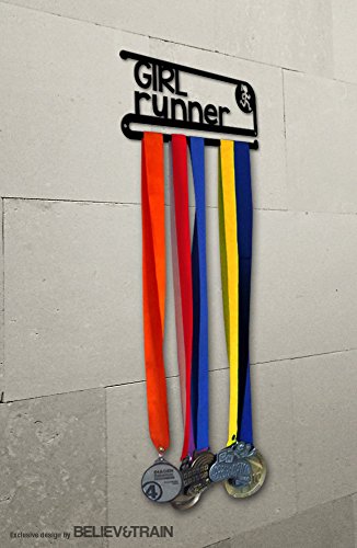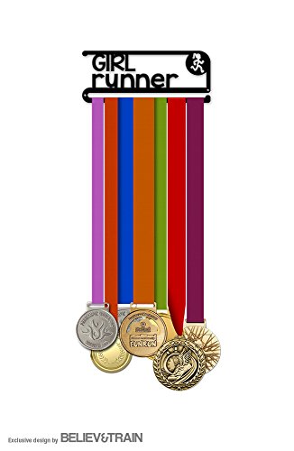 -. Binding : Misc. -. Brand : Believe&Train -. Color : Black -. EAN : 0099461320017 -. Feature : Unique design with motivational message to proudly display medals / Made of light weight high grade aluminum. Holds 7-10 medals** / Extension kits available to add more medals (sold separately) / Slide medals to display / Easy to install. Includes complete wall mounting kit -. IsAutographed : 0 -. IsMemorabilia : 0 -. Label : Alveni -. LegalDisclaimer : *Does not include tools nor medals. **Number of medals may vary according to ribbons width. It ships to USA except AK/HI/Puerto Rico. Most orders are shipped within 2-3 days from the purchase date. -. Manufacturer : Alveni -. MPN : MHGRUWBK01 -. PackageQuantity : 1 -. PartNumber : MHGRUWBK01 -. ProductGroup : Sports -. ProductTypeName : SPORTING_GOODS -. Publisher : Alveni -. Size : 3" x 8" (8 cm x 20 cm) -. Studio : Alveni -. Title : Running Medal Hanger - Girl Runner -. UPC : 099461320017