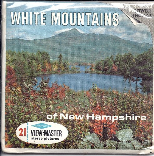 Studio : View-Master Publisher : View-Master Binding : Toy Product Description See 21 breathtaking 3d scenes of 1950's New Hampshire including: Mt. Chocorua, Conway Covered Bridge, Cathedral Ledge, Story Land at Glen, Pinkham Notch Camp, Mt. Washington Cog Railway, Six-Gun City, Santa's Village, Tramway at Franconia Notch, and more! 0