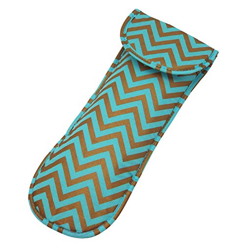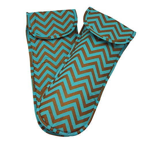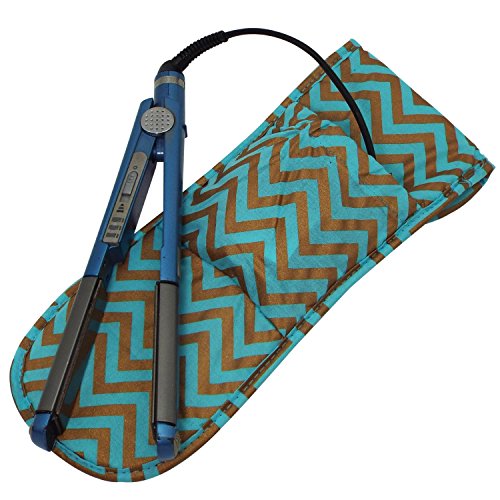Heat-resistant Flat Iron Cover- Set of 2 -Teal and Bronze Chevron