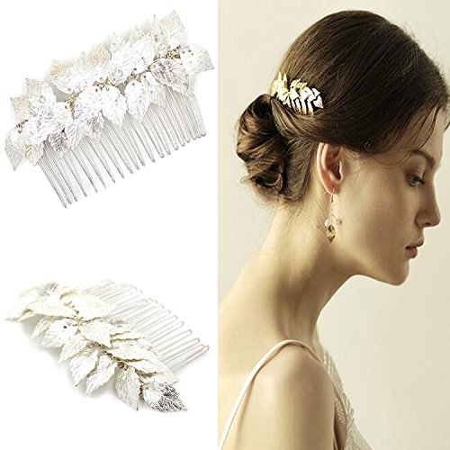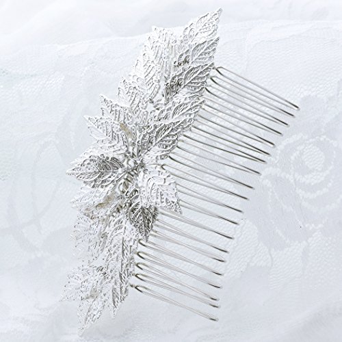 Yean Wedding Hair Comb Leaves Bridal Hair Comb Accessories for Bride and Bridesmaid (Silver)