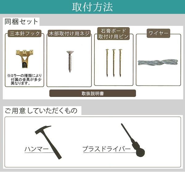 | 付属品 | 三本針フック、木部取付け用ネジ、石膏ボード取付け用ピン、ワイヤー(約75cm)×1本、取扱説明書 |