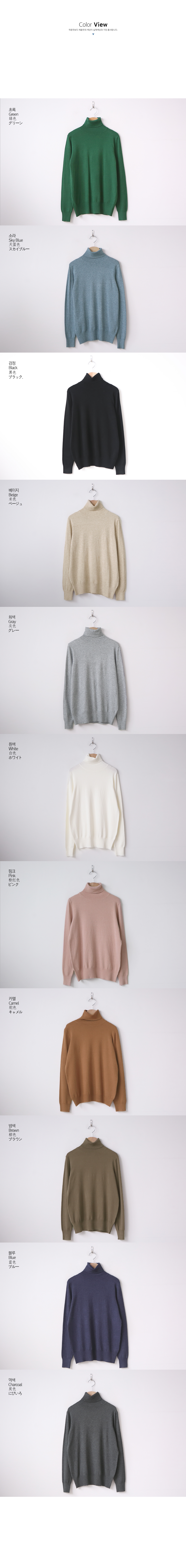초록(Green),소라(Sky Blue),검정(Black),베이지(Beige),회색(Gray),흰색(White),핑크(Pink),카멜(Camel),밤색(Brown),블루(Blue),먹색(Charcoal) |