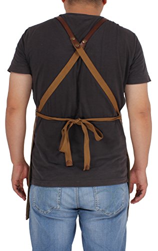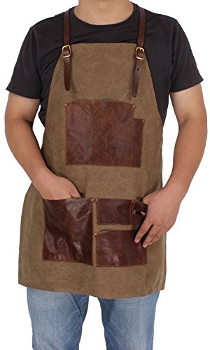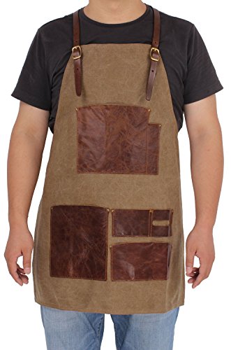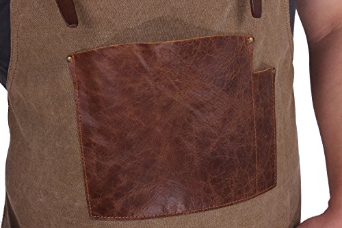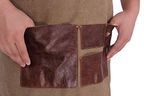 Galsang Canvas Leather Welding Tool Chef Bib Apron #726 (khaki)