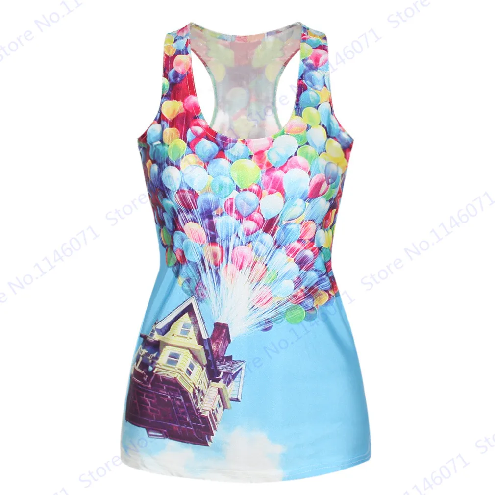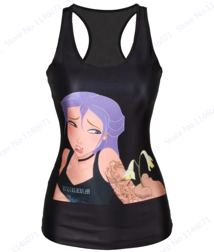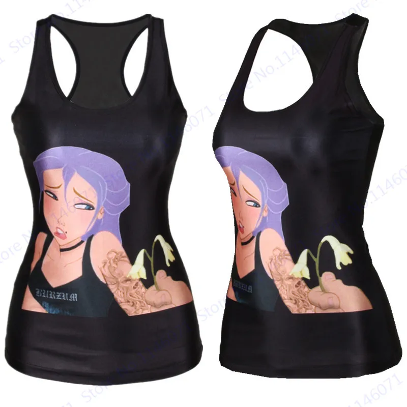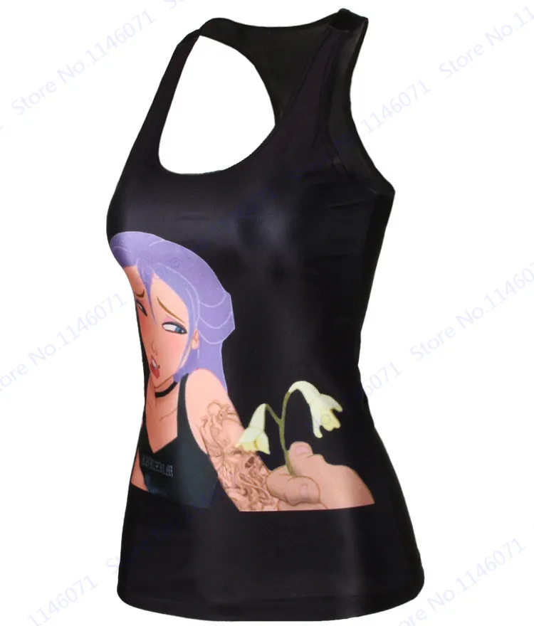 Features 5::Summer Women Sports Running Tanks Purple Hair Cartoon Princess Singlet