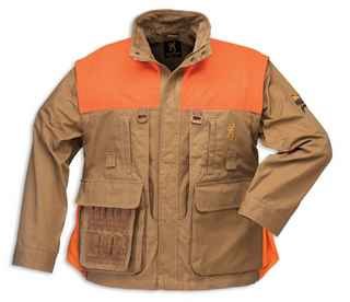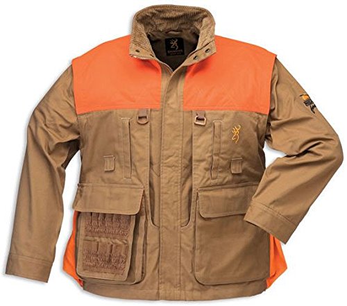 Studio : Pro-Motion Distributing - Direct Publisher : Pro-Motion Distributing - Direct Binding : Sports Product Description What do you look for in an upland hunting jacket? We think it is what you get with a Browning Pheasants Forever Jacket. It is packed with top features, plus special Pheasants Forever embroidery that will make a statement about what you are all about. Made in China Features: - 12 oz., 100% cotton canvas - 100% polyester blaze overlay over 400 square inches - Large bloodproof front load game bag with zip opening for easy cleaning - Shell pockets - Hook and loop pocket flap for easy shell pocket access - D-rings for dog training accessories - Two zippered front pockets - Two-way front zipper with snap storm flap - Adjustable cuffs - REACTAR G2 pad pocket behind each shoulder patch (pad sold separately) - Regular Cut Specifications: - Gender: Men - Fit: Regular - Size: X-Large - Activity Use: Upland - Main Fabric Structure: Woven - Main Fabric Content: Cotton, Polyester - Color: Field Tan - Secondary Color: Blaze - Performance: Breathable