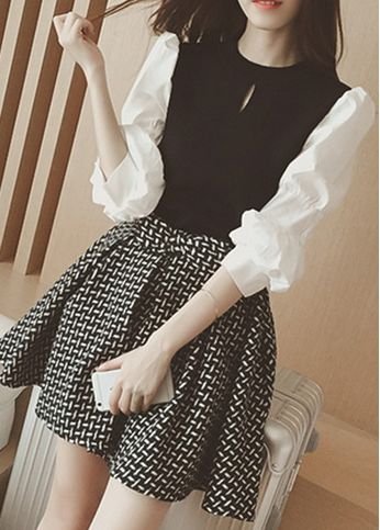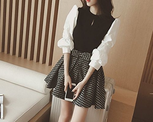-. Feature : ☆無条件にカワイイ。白と黒の重ね着風トップス♪ / ☆優雅なパフスリーブ袖は二の腕カバーもお手のもの♪ / ☆表情のあるデザインとゆったりラインで女らしい華奢見せも叶う♪ / ☆肩口からのシルエットはフェミニン感たっぷり♪☆冬はざっくりアウターと合わせてコーデを楽しんで♪ / 【サイズ】【Mサイズ 着丈:57cm 胸囲:40cm 肩幅:32cm 袖丈:50cm 裾幅:40.5cm】【Lサイズ 着丈:58cm 胸囲:44cm 肩幅:32.5cm 袖丈:52.5cm 裾幅:44cm】【XLサイズ 着丈:58.5cm 胸囲:44.5cm 肩幅:33cm 袖丈:53cm 裾幅:44cm】