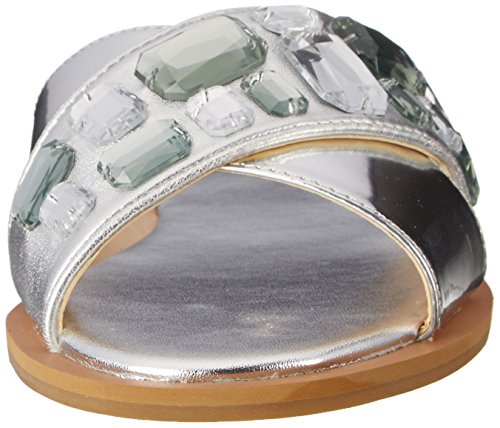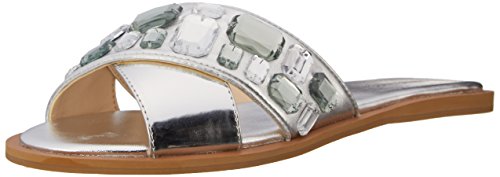 Slide sandal with crisscross straps in faux leather embellished with chunky faux jewels