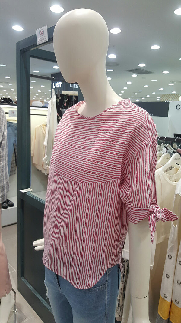 살짝 립라인 넥 블라우스예요~순면이라 가볍고 시원하게 입으시기 너무 좋아요~루즈핏이라 편하고 소매 리본이 포인트로 이뻐요~여러 아이템들과 매치해서 이뿌게 입으세요 ~