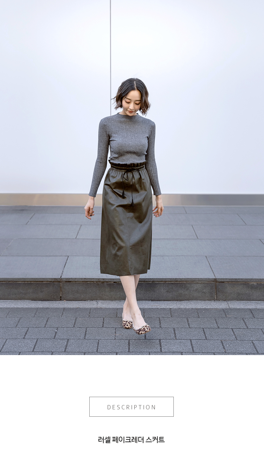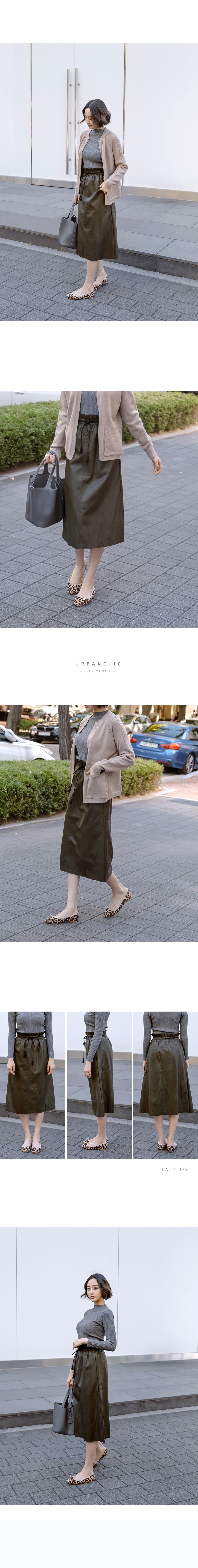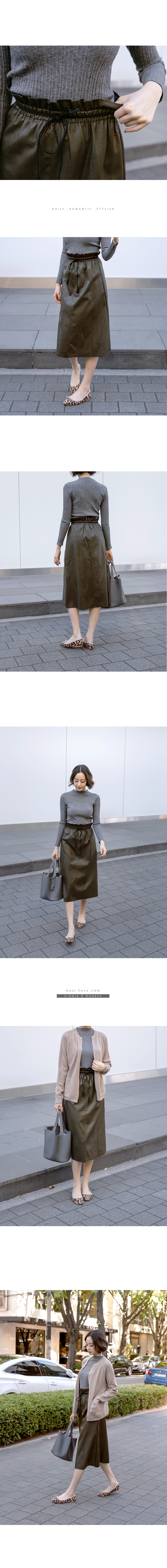페이크 레더 A라인 미디스커트