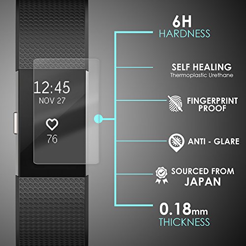 -. Title : Fitbit Charge 2 Screen Protector with Japanese Film Protection - 6 Pack - High Grade, Super Thin, Perfect Size, Easy Install Accessory to the Fitbit Charge2