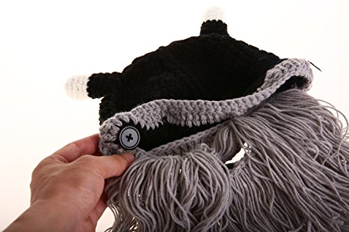 Binding : Apparel Product Description Product Details: #9670Color:Black Grey Dark Grey Blown 4 colors fo your choice #9670Material: Made of high quality acrylic,very warm and comfortable to wear in winter #9670Size:One size fits most.It can be stretched.Hat circumference 20.5"- 22" #9670Shape/Pattern: handmade knitted,detachable beard #9670Function:Protect you from cold wind,keep you warm in chilly winter.A fashionable cap for costumes #9670Style:Viking horns bearded caps #9670Target Audience:Both suitable for men and women Kindly Note: 1.Hand cold warm water wash better 2.Color may have a little difference because of light. 3.Due to the manual measurement, please allow slight difference. 4.Standard shipping and expedited shipping are offered for your choice. Standard shipping will take you 7-15 work days to get the package.Expedited only need 2-4 shipping days. 0