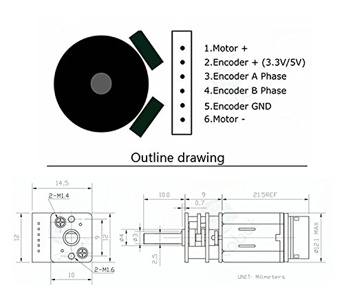 A new micro metal gear motor with a difference! This motor comes with a built-in encoder which measures the motor's speed in real time. The average output number of pulses can reach up to 7*2*100 pulses per revolution. The motor has a long (0.354in/9.0 mm) D profile metal output shaft that is compatible with the 42x19mm and 32x7mm dimensions of the Pololu wheel. The brass faceplate has two mounting holes threaded for M1.6 screws (1.6mm diameter, 0.35mm thread pitch), or you can use the mounting bracket or extended mounting bracket which are specifically designed to securely mount the gear motor while enclosing the exposed gears. We recommend the extended mounting bracket for wheels with recessed hubs, such as the 42×19mm wheel.