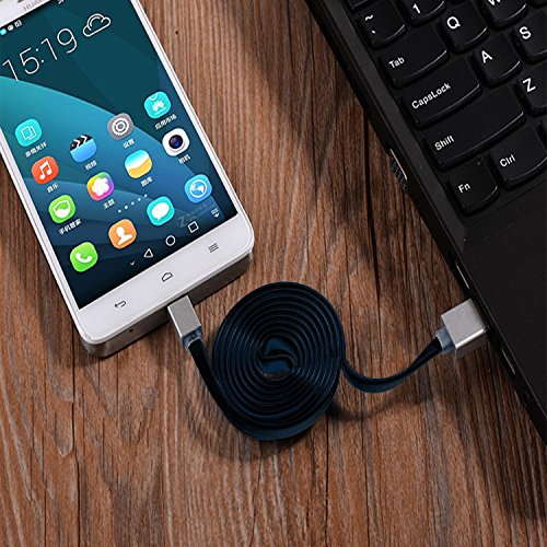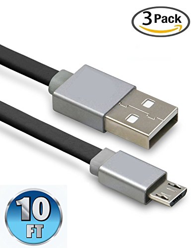 Android Charger, Myckuu 3 Pack 10ft 3M Durable flat noodle Tangle-Free Micro USB 2.0 Charge Cable Sync Charging Cord for Android, Samsung, HTC, Sony, Nokia and More (black)