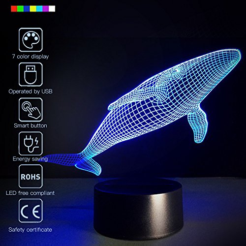 VERSATILE: soft LED light,fatigue free,fun addition to KIDS/NURSERY ROOM; WHALE with distinctive colors, perfect for HOME/FESTIVAL DECORATION;cool BIRTHDAY GIFT for people in ANY AGE