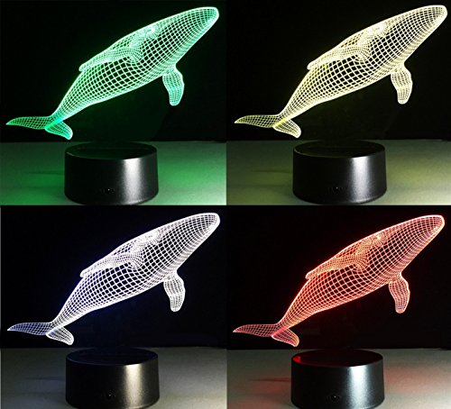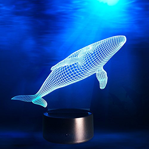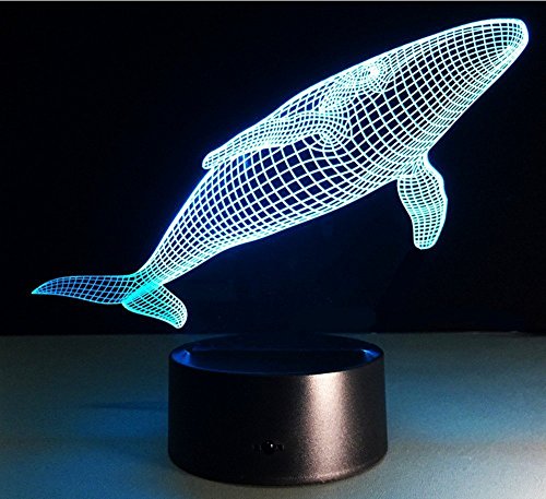 3D Glow Optical Illusion 7 Color Changing Animal Night Light Touch Button Desk Lamp Table Light Home Decor (Whale)