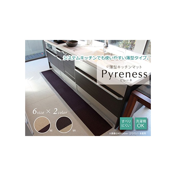 원본상품명: イケヒコ キッチンマット 洗える 無地 『ピレ?ネ』 ブラウン 約44× 180cm (厚み約7mm) 滑りにくい加工