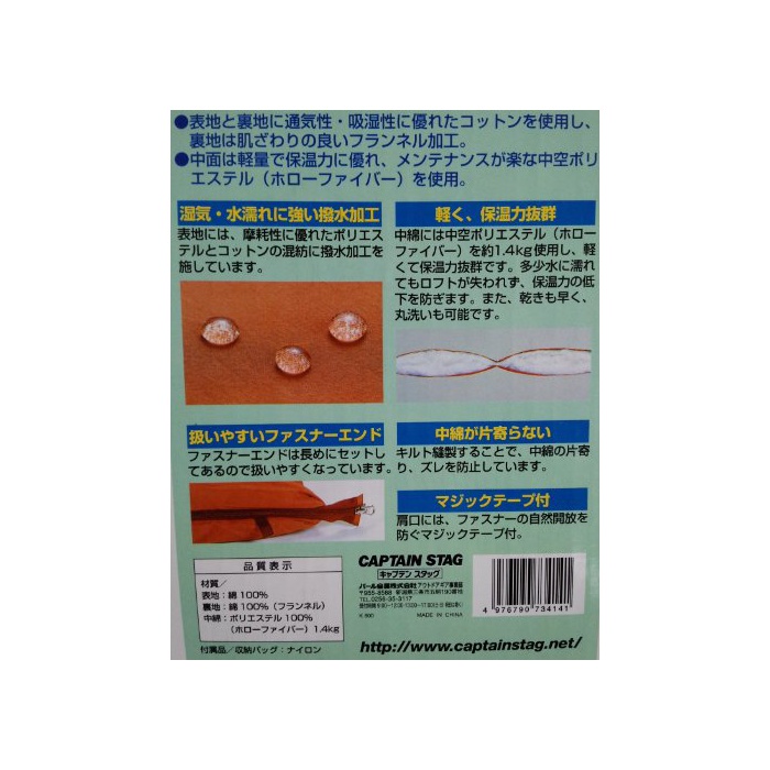 원본상품명: キャプテンスタッグ ?袋 冬用 シュラフ キングサイズ [最低使用?度5度]M-3414