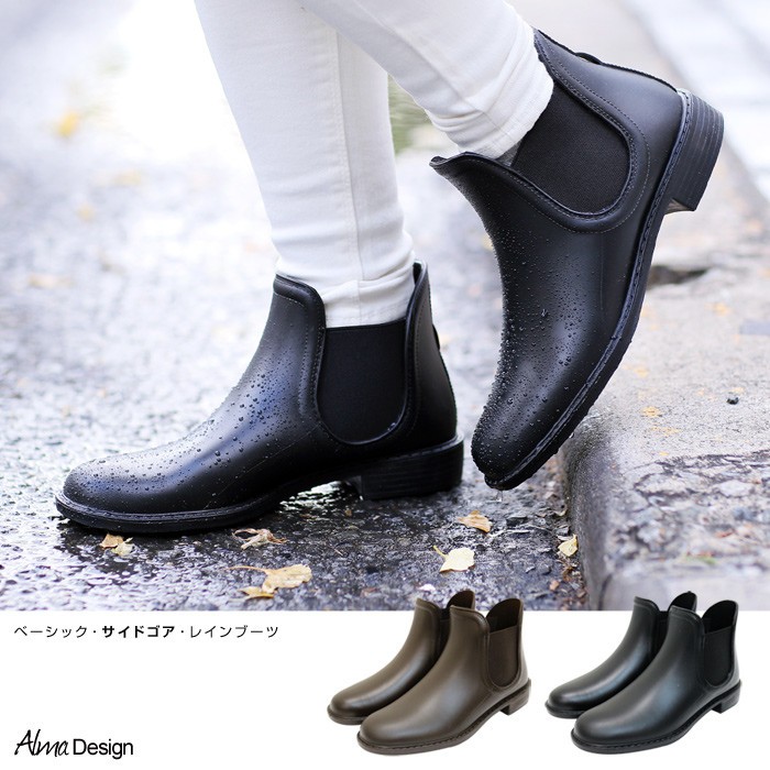 ベーシックで合わせやすい、サイドゴアタイプのレインシューズ。