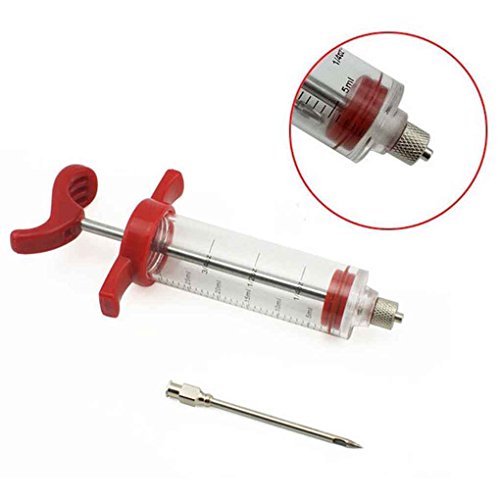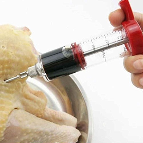 Studio : Omkuwl Publisher : Omkuwl Binding : Kitchen Product Description Description: The flavor can be inhaled easily and then injected into the meat, make the meat more delicious. Suit for some simple injections, such as garlic butter, honey butter, red wine and buffalo sauce, etc. Great cooking tool for making food more tasty if you like going to a picnic and having a BBQ. Made of PP and stainless steel, easy to clean and store. Extra 5 needles to you for the replacement, you can use the item for a long time. Materials: Stainless Steel. Available color: Red. Package weight: 0.152 kg. Product Size(L x W x H): 7*4*14.5cm / 2.76*1.57*5.71 inches. Package Contents: 1 x Meat Marinade Injector. 0