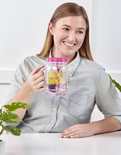 -. Feature : FUNCTIONAL DESIGN: This reusable cup is designed for on-the-go use complete with a lid, straw and handle; our mugs are double wall insulated to prevent condensation and keep your drink cold for hours / FUN FLOATING SP.R.INKLES: Our cute "Life is Sweet" design is perfect for kids and adults alike; the floating sP.R.Inkles throughout the body of the cup bring a pop of color and fun to your beverage / PERFECT FOR PARTIES: This decorated drinking cup makes a great party favor for birthday parties and more; the Tri-Coastal tumbler is unique and colorful, sure to make it a favorite of all your guests / BPA FREE: The plastic used in our cups, lids and straws is BPA free so you don't have to worry about being exposed to harmful chemicals that are used in some other water bottles and food containers / KID FRIENDLY: Suitable for children 3 years and up, this easy sip straw cup is made from break-resistant plastic to protect from accidental drops and the lid screws on securely to prevent spills