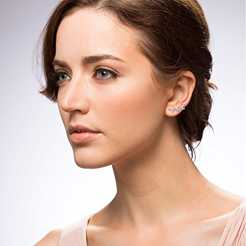 -. Feature : Metal: 925 sterling silver, rhodium plated, nickel free / Stone: cubic zirconia (0.11 ct.tw) / Size: 0.85 inch in length, 0.3 inch in width / Back Finding: posts with butterfly backs
