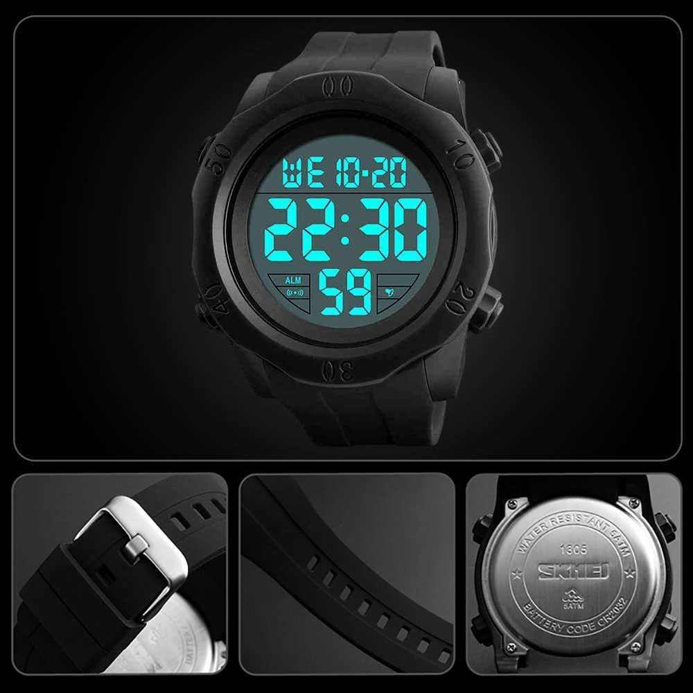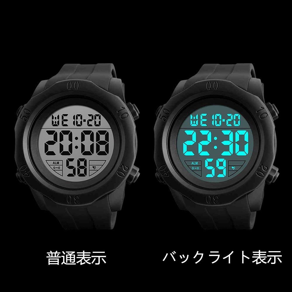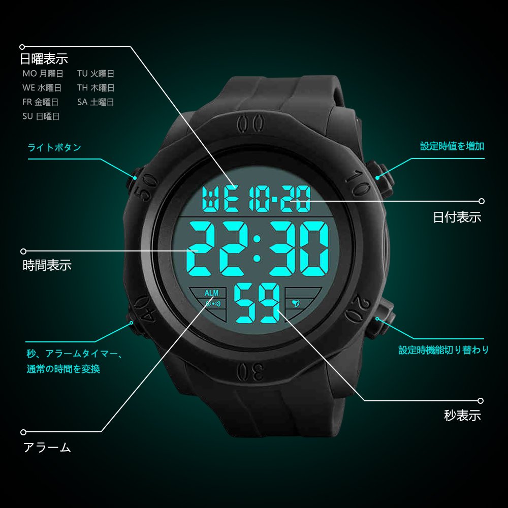 Function: Alarm, stopwatch 12/24 time switching Sunday display LED light