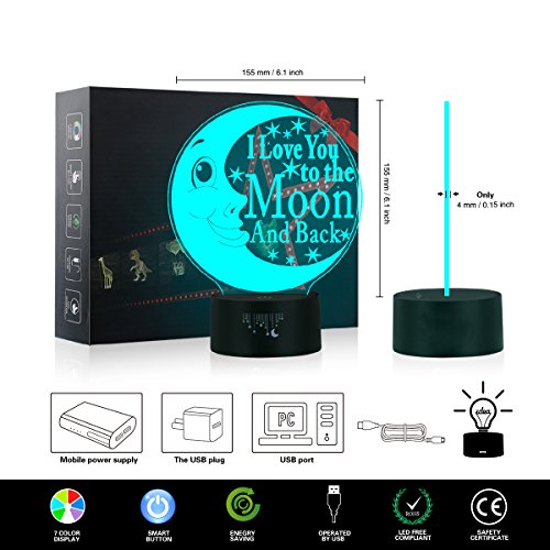 I LOVE YOU 3D LED Optical Illusion Lamps, Rquite 7 Color Change Touch Switch Art Sculpture Lights LED Desk Table Night Light Awesome Gift