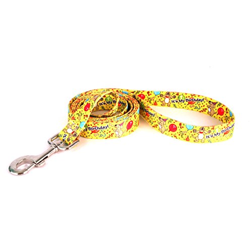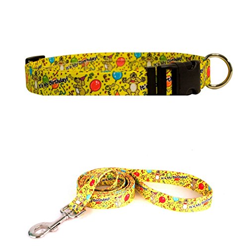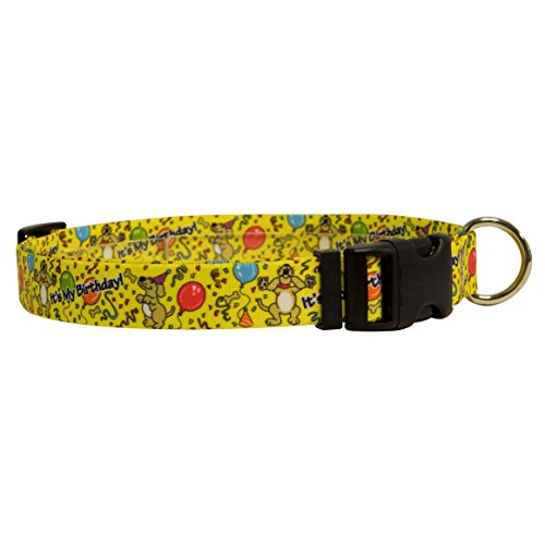 Studio : Yellow Dog Design Publisher : Yellow Dog Design Binding : Misc. Product Description This is the Happy Birthday Dog Collar with Tag-A-Long ID Tag System - Size Large - 1 inch wide and fits neck sizes 18 to 28 inches from Yellow Dog Design, made right here in the USA. Keep your dog in the latest fashion with this stylish, functional and durable dog collar. TAG-A-LONG - This brand new, patent pending Pet ID Tag system is built right in to this dog collar. The Tag-A-Long system makes it easy to swap out ID tags from one collar to another, or to change ID Tags on the same collar. Perfect for when a special tag is needed at the dog park, on the beach, or as a service dog. We've included this special feature at no cost! EASY ON EASY OFF - Using a quick release clasp, the collar can easily be taken on or off the dog. Don't worry though, opposable thumbs are necessary to activate the quick release. SIZING: This dog collar utilizes a quick clasp closure, also called a side release clasp. Sizing is given as a range of neck lengths. Measure your dogs neck size or its current collar length (not including buckles) to obtain correct sizing. If you are shopping for designer, affordable dog/pet collars, then look no further. These durable, guaranteed to last dog collars have no rough edges, no threads to fray or break, no problem going in the wash, and no stress getting them on or off your dogs. 0