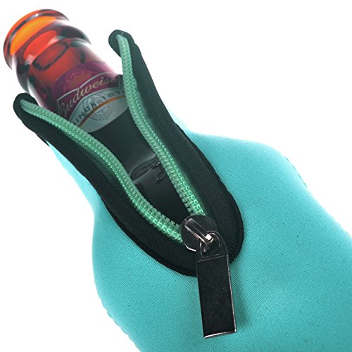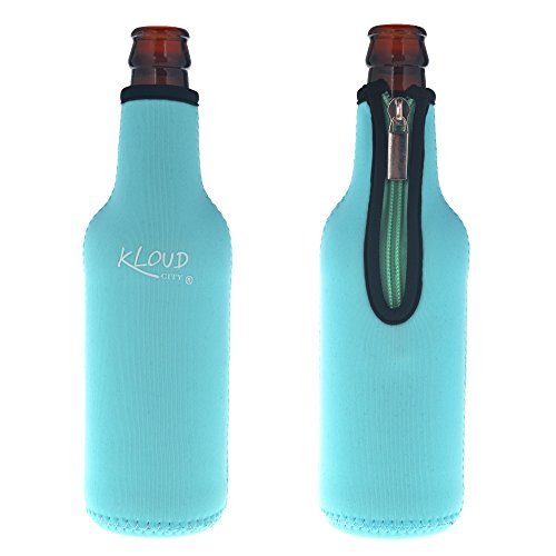 KLOUD CITY® NEOPRENE 12 OZ BEER COOLERS COOLIES BOTTLE KOOZIES SLEEVE HOLDER WITH ZIPPER (BLUE)