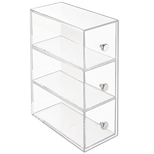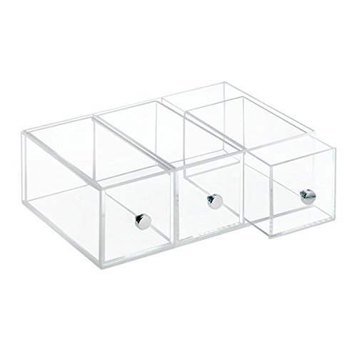 Features clear drawers with chrome knobs allow you to see contents and easily pull the drawers open