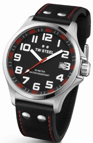 -. Title : TW Steel Pilot Black Dial Black Leather Mens Watch TW410