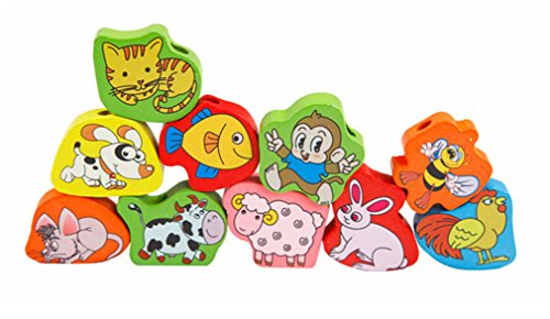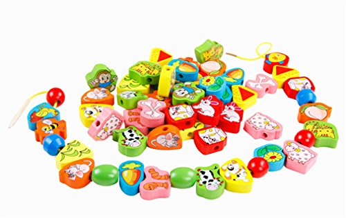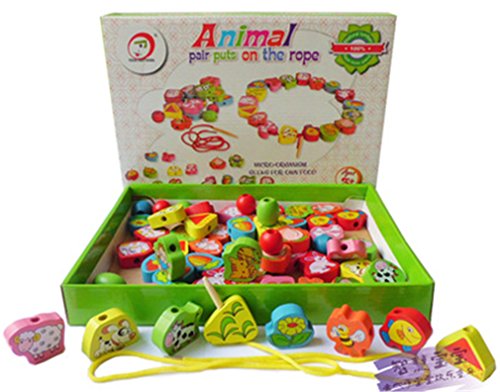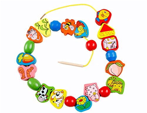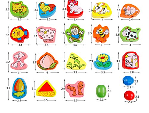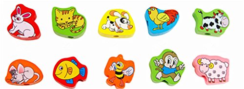 This wonderful wooden bead set features dramatic bead shapes, bold colors and extra-long laces. Multi-colored hand-painted beads feature numbers animal fruit pattern add counting fun to this lacing activity. Wonderful Fruits and animals Lacing & Stringing Beads Toys for Toddlers! You and your kids decide how to string this beads.