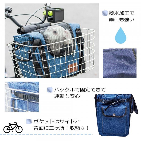 ワンタッチバックルでカゴに固定できて安心!撥水加工で雨にも強い!ワンちゃんとお出かけにピッタリ!ショルダーベルト付で2WAY使用OK♪ |