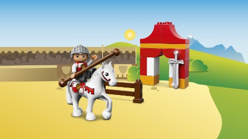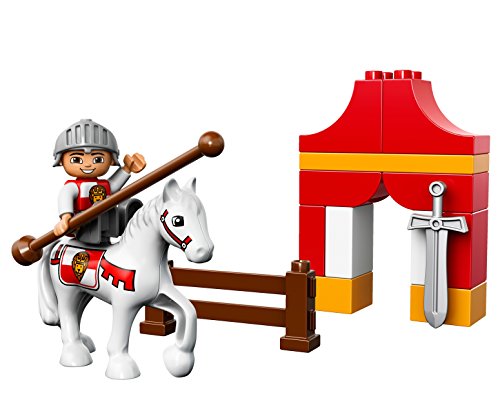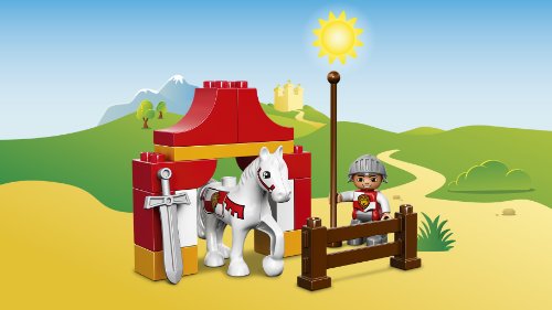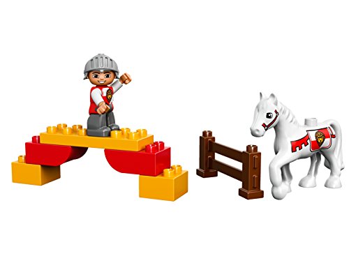 Mount the brave knight with his lance and sword on the horse and get ready to enter the medieval Knight's tournament. There's a fence to jump over and a tent for the knight to relax by after a hard day's jousting. Help your young knights master basic building skills with the easy-to-build models and watch them enter a world of knight-themed role play. Includes a knight LEGO® DUPLO® figure.