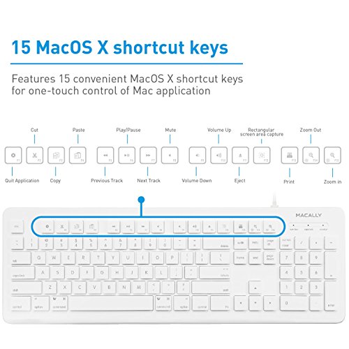 Easy access of media with 15 Apple shortcut keys (cut/copy/paste, iTunes control, Volume up/down, etc.) and multimedia shortcuts for Windows PC. Just plug and play