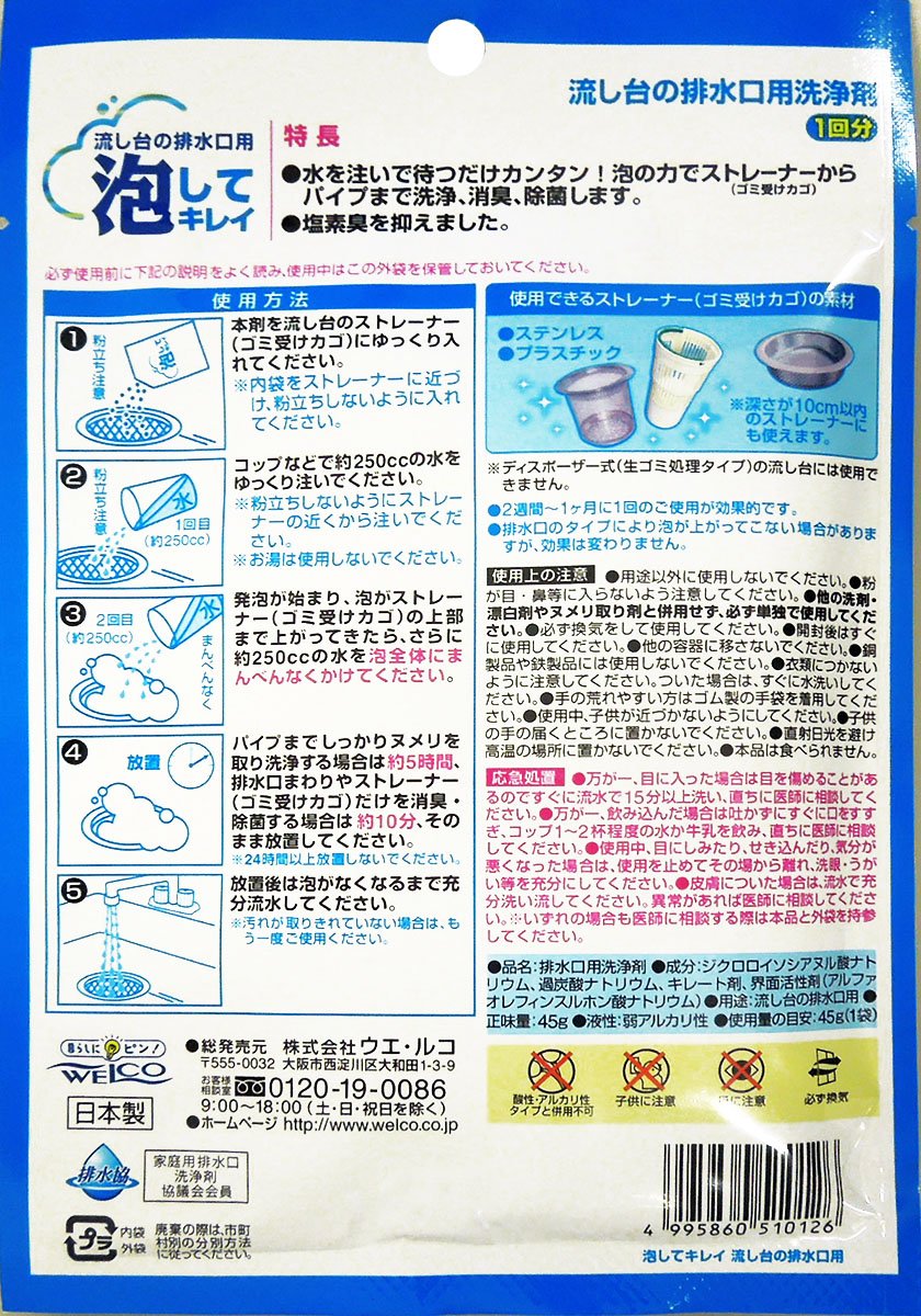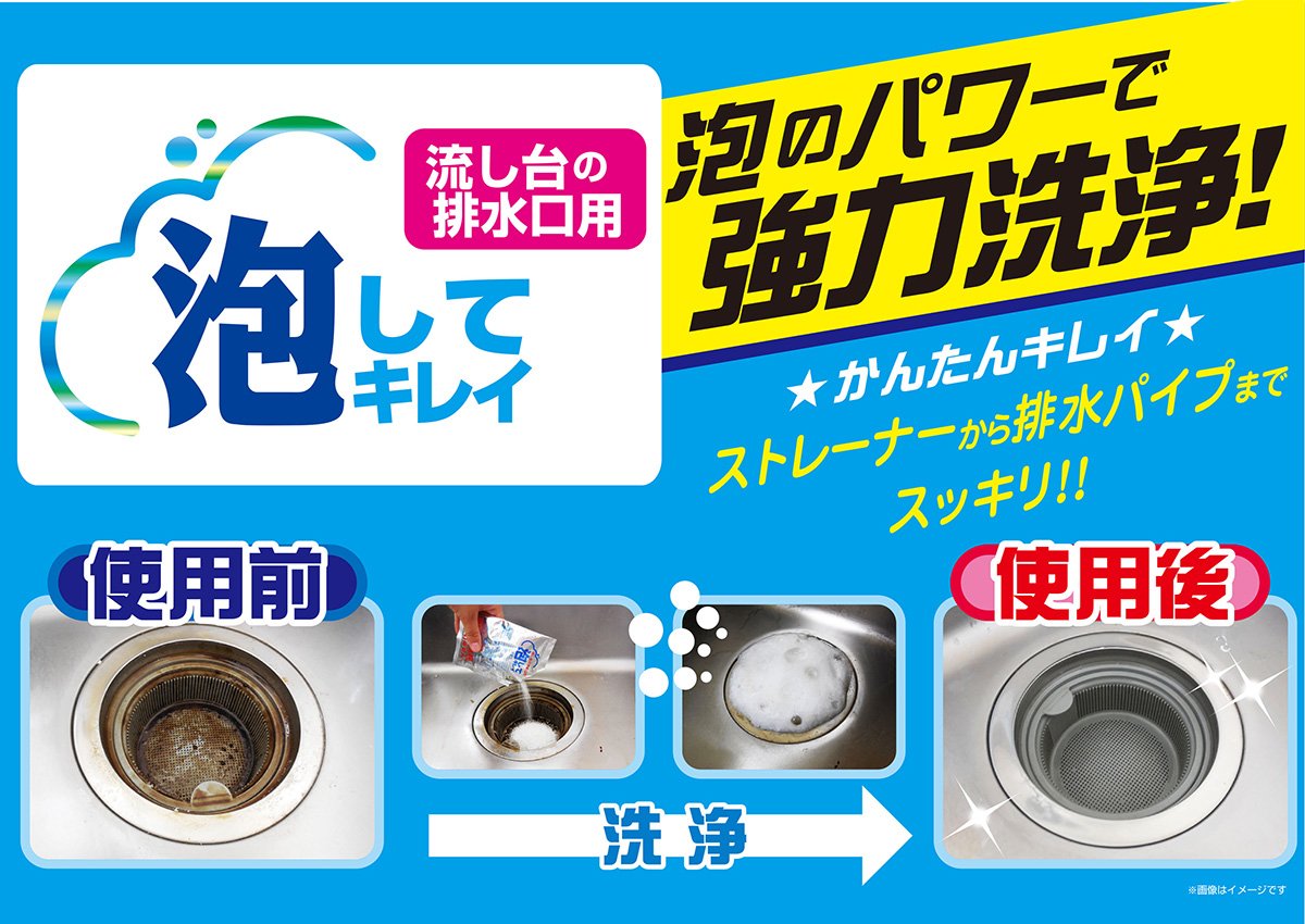 ● It is a kitchen drain outlet detergent that cleans the unclean drain of the kitchen drain with the power of foam, as well as deodorizes and disinfects the kitchen drain.