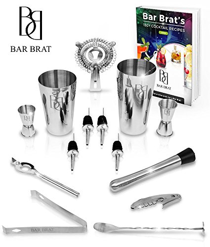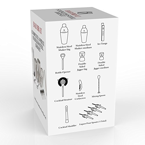 - ★ PREMIUM 304 STAINLESS STEEL BAR KIT - The best of bar sets, this one is made of the strongest stainless steel thus it is very strong. Our premium and protected packaging makes the Bar Brat cocktail shaker set the perfect holiday gift and christmas gift.