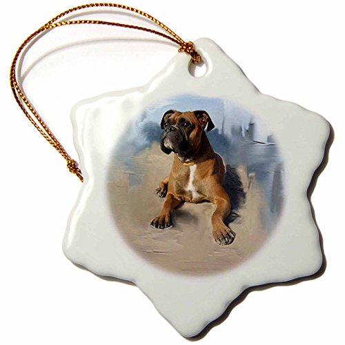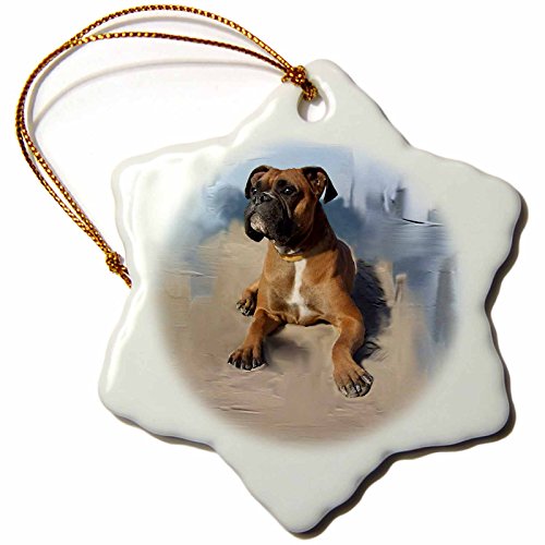 3drose Brindle Boxer Snowflake Porcelain Ornament, 3-Inch