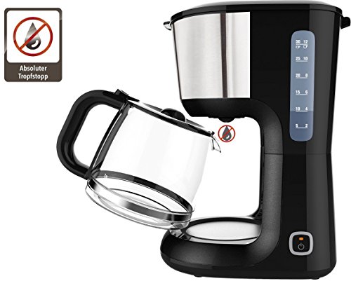 Moderne Kaffeemaschine mit Edelstahlverkleidung, Aroma-Glaskanne und 40 Minuten Warmhaltefunktion