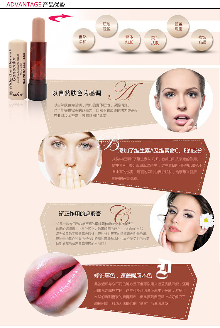 遮瑕膏有点干,介意务拍,涂点润唇膏就会很好的,连个运费都不够的,你懂得!!!