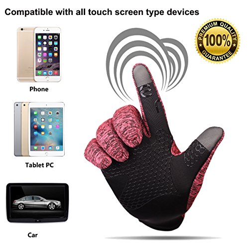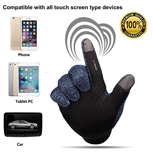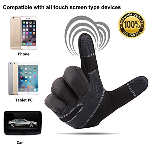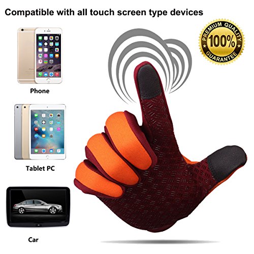 Made of a composite of windproof fabrics with the entire palm of the glove with antiskid silica particles to prevent a slippery effect. and in addition, fingertips with touch screen sensitivity so you can use your phone at all times. It's an excellent choice for Gifts or Your Own Dressing. Buy more for your friends and family. Touch screen gloves are an essential accessory for your daily life. They keep your hands warm but yet still give you the capability to be able to use your touch screen phone or tablet while don't need to remove the gloves.
