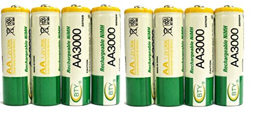 Capacity : 3000 mAh Chemistry : Ni-MH (Nickel Metal Hydride) Size : 5.0cm x 1.4cm Weight : 15.5g~16.5g (1pcs) Rechargeable Times : Up to 1000 times. No memory effect,Environmental friendly.