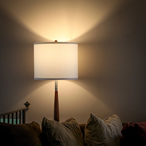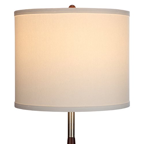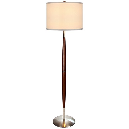 - DECORATIVE FURNITURE WITH PRESTIGE - The upscale vibe of the Lucas LED Floor Lamp brings a touch of elegance to any living room, bedroom, office space, executive suite, library or study, and anywhere else fine woodworking with silky smooth lighting is desired. The energy efficient LED bulb stays dignified behind the white poly-cotton blend fabric of the drum lamp shade secured by a matching wood finial. The 13" by 16" shade is open on top and bottom to provide balanced light without being harsh.